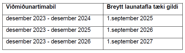 Ef breytingarnar hafa í för með sér skert launakjör eða réttindi skal hann halda óbreyttum launakjörum og réttindum jafn langan tíma og réttur hans til uppsagnarfrests er samkvæmt samningi þessum.