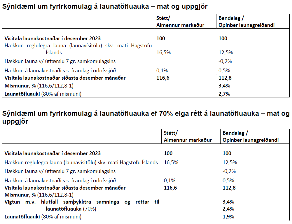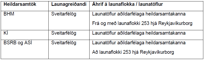 Nú tekur maður, er launagreiðslna nýtur samkvæmt 1. mgr. við starfi í þjónustu sveitarfélagsins, áður en liðinn er 6 eða 12 mánaða tíminn og skulu þá launagreiðslur samkvæmt þessari grein falla niður, ef laun þau er nýja starfinu fylgja, eru jöfn eða hærri en þau er hann naut í fyrri stöðunni. Ef launin í nýju stöðunni eru lægri, skal greiða starfsmanni launamismuninn til loka 6 eða 12 mánaða tímabilsins.”
