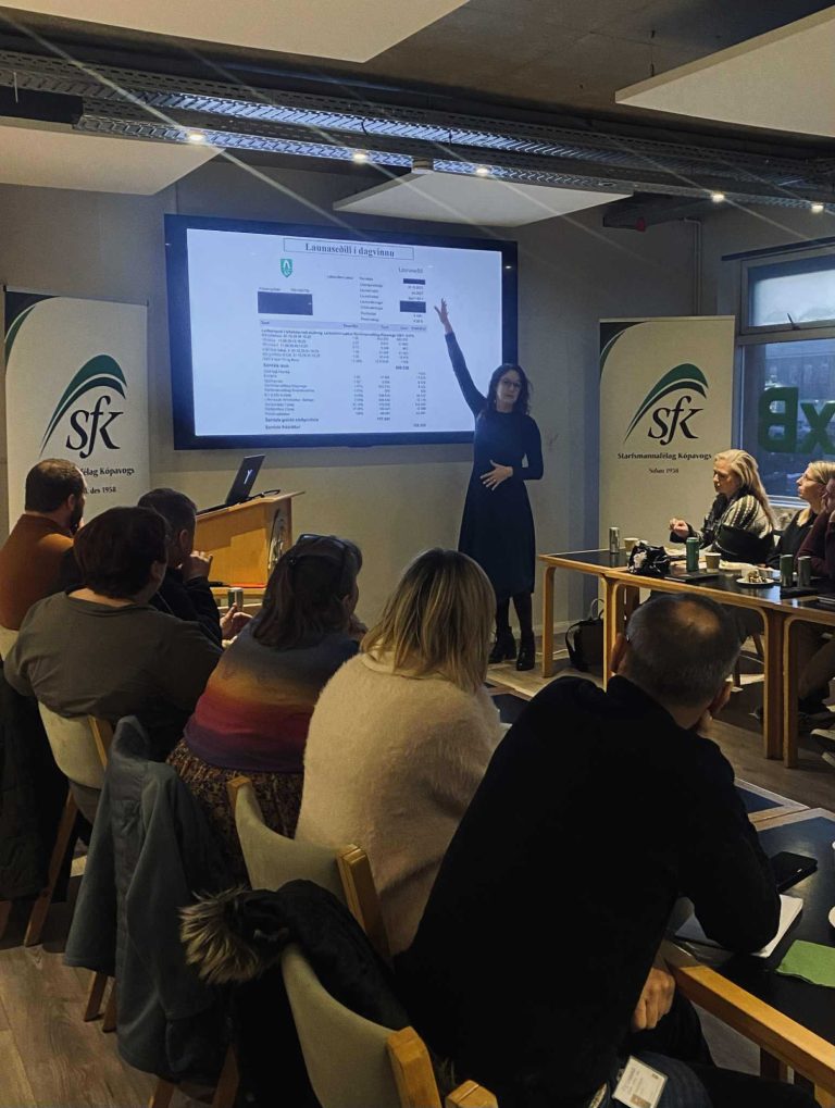 Marta Ólöf fór þvínæst yfir launaseðla og mismunandi liði þeirra hvort sem um ræðir dagvinnufólk eða vaktavinnufólk og svaraði ýmsum fyrirspurnum trúnaðarmanna. Að lokum voru kynntar helstu niðurstöður úr könnuninni Sveitarfélag ársins.