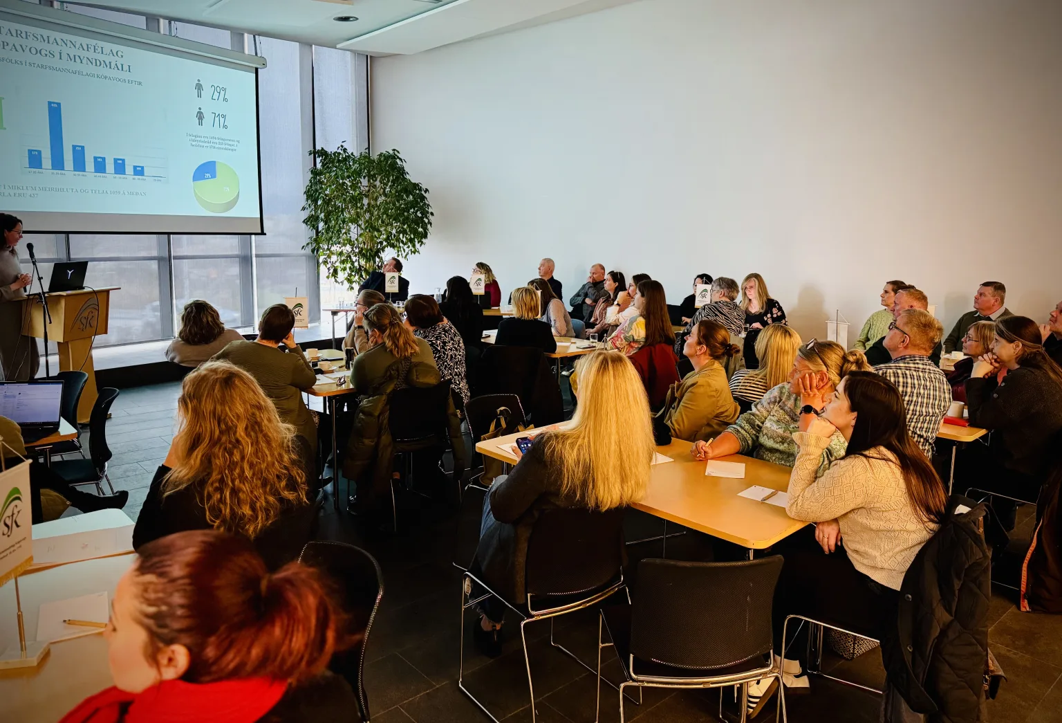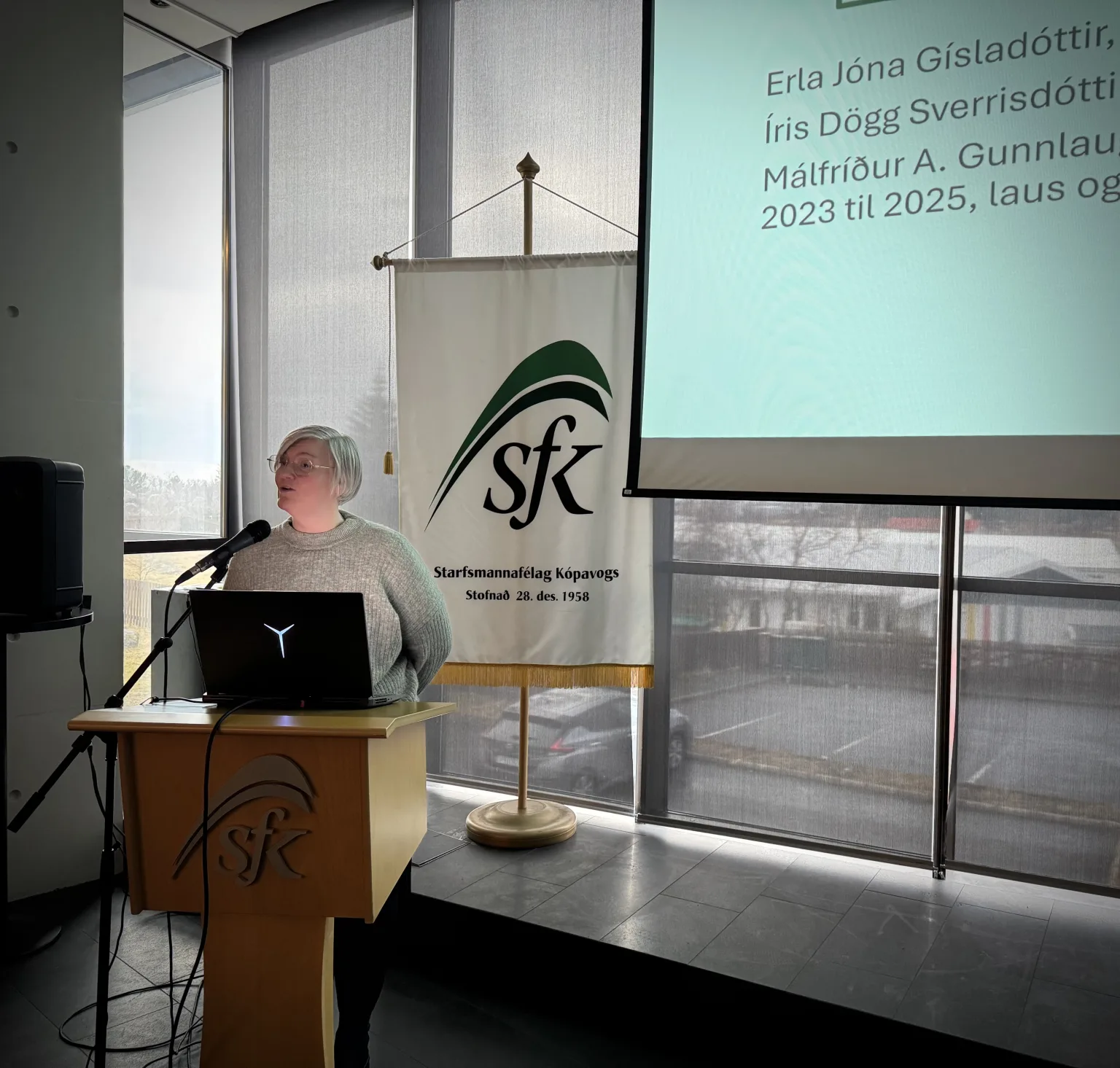 Við kvöddum fráfarandi stjórnarmann Gunnar H. Ragnarsson og þökkuðum honum innilega fyrir sitt góða starf fyrir félagið. Kosið var um tvö sæti í stjórn SfK, við óskum Málfríði Önnu Gunnlaugsdóttur til hamingju með endurkjör sitt og bjóðum Írisi Dögg Sverrisdóttur innilega velkomna. Sigmundur Karl Kristjánsson kom inn í orlofsnefnd og bjóðum við hann einnig hjartanlega velkominn.