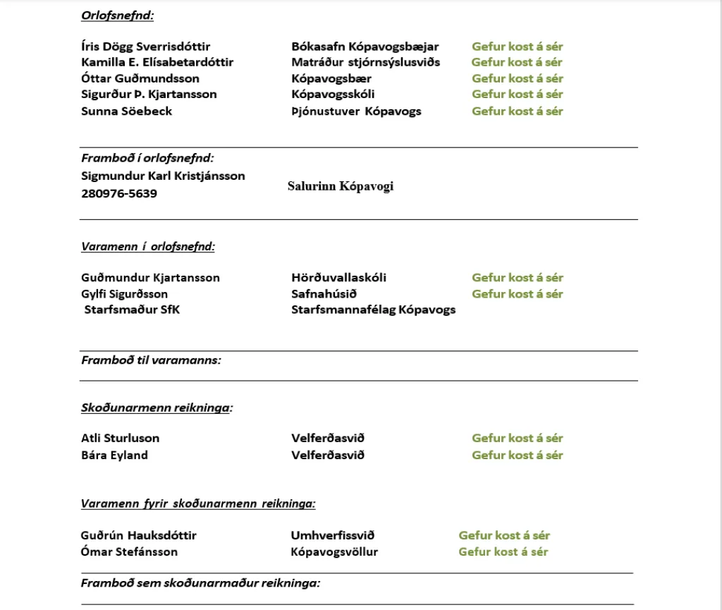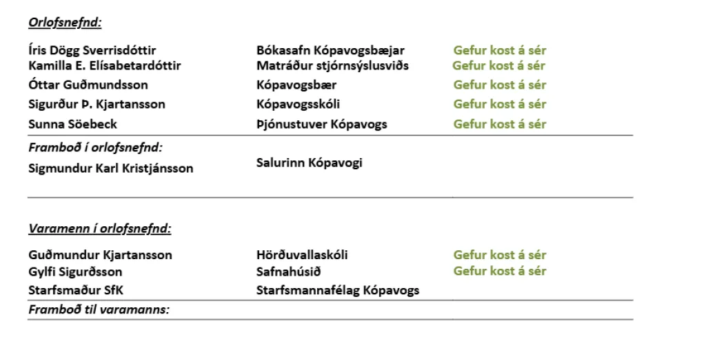 Framboð í orlofsnefnd: