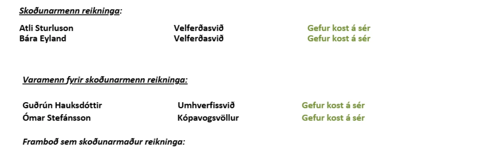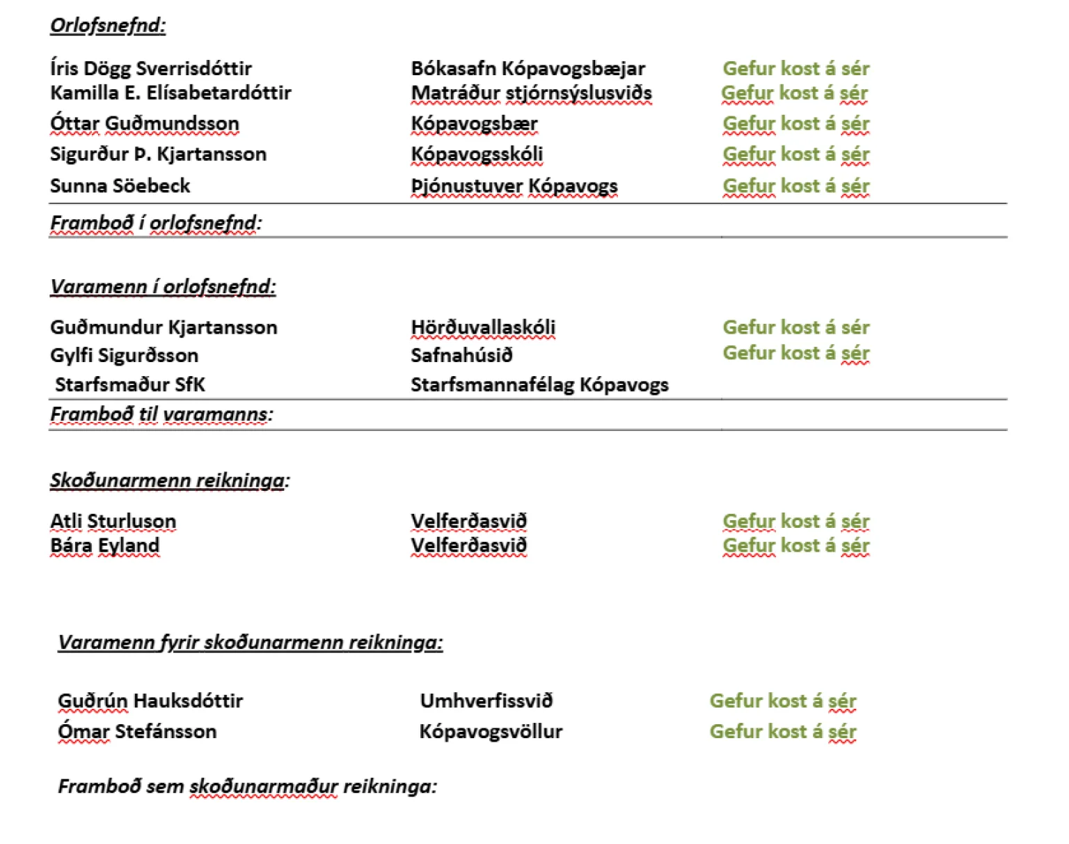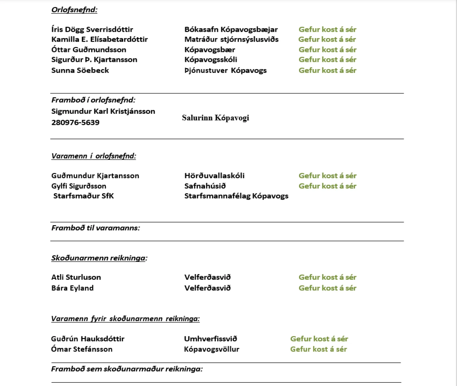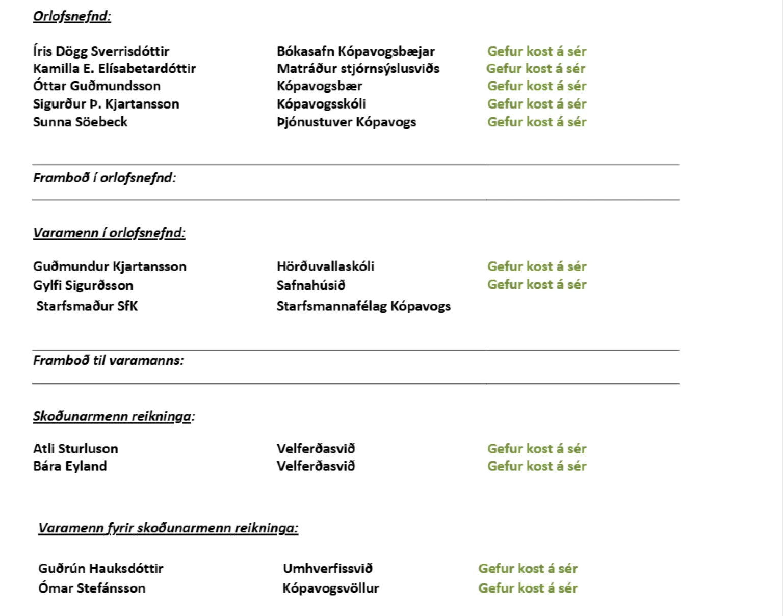 Þeir einstaklingar sem þegar hafa boðið sig fram til starfa í stjórn og nefndum félagsins eru eftirfarandi: