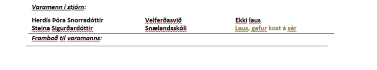Framboð í stjórn: