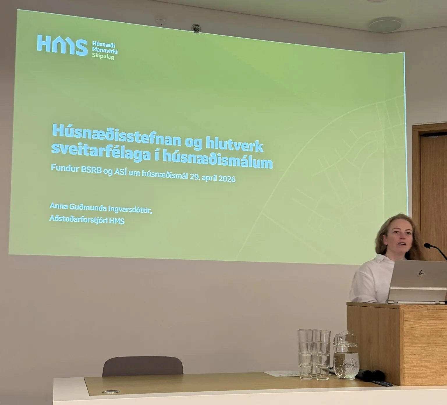 Anna Guðmunda Ingvarsdóttir, aðstoðarforstjóri HMS kynnti nýja húsnæðisstefnu sem gildir til ársins 2038. Þar er fyrsta markmiðið að ná jafnvægi á húsnæðismarkaði þar sem fjölbreytt framboð íbúða mæti þörf og að þróun húsnæðis- og leiguverðs sé stöðugt. Þvínæst að skilvirk stjórnsýsla og bætt starfsumhverfi mannvirkjagerðar styðji við gæði, öryggi rekjanleika og hagkvæmni. Að það sé markmið að landsmenn búi við húsnæðisöryggi og jafnrétti í húsnæðismálum og að slíkt framboð stuðli að virkum vinnumarkaði um allt land.