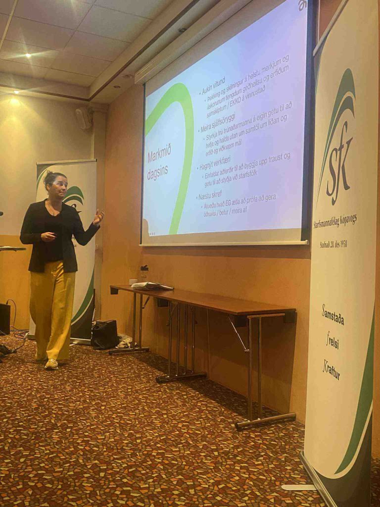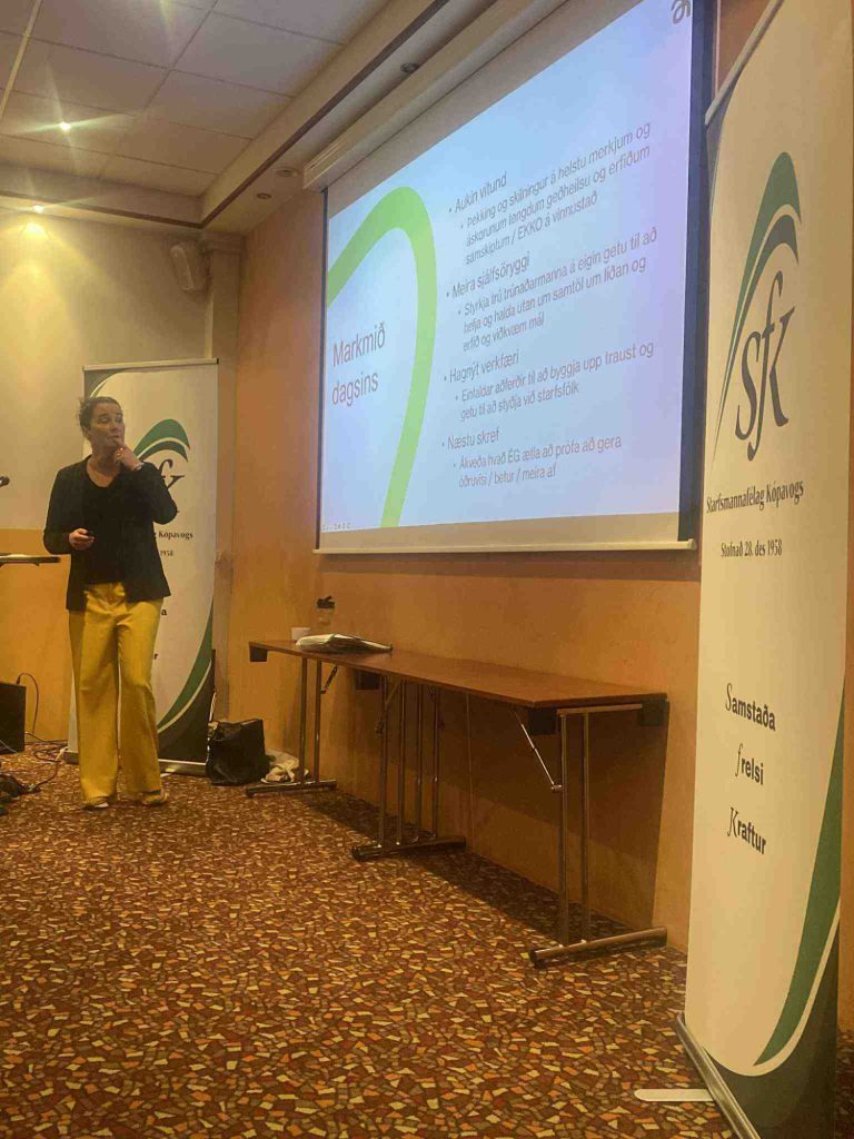 Dagurinn hófst á veglegu morgunverðarhlaðborði og síðan tók við þriggja stunda vinnustofa sem Helena Jónsdóttir framkvæmdarstjóri og stofnandi Mental ráðgjöf sá um. Á vinnustofunni var farið yfir áskoranir tengdar geðheilsu og erfiðum samskiptum á vinnustað. Valdefling trúnaðarmanna á eigin getu og hagnýt verkefni til að styðja við trúnaðarmenn í sínu starfi. Farið var yfir hlutverk trúnaðarmanna, skyldur og ábyrgð bæði trúnaðarmanna í starfi en einnig borgaralegar skyldur allra. Farið var yfir EKKO (Einelti, kynbundin áreitni, kynferðislegt ofbeldi og ofbeldi), ólíkar birtingarmyndir við slíku ofbeldi og mikilvægi þess að stíga inn í og standa ekki hjá slíkri hegðun. Við berum öll ábyrgð á að stíga inn í og stöðva ofbeldi, verði starfsmaður uppvís að alvarlegu ofbeldi ber okkur skylda að tilkynna slíkt.